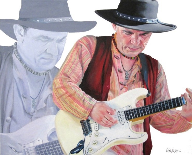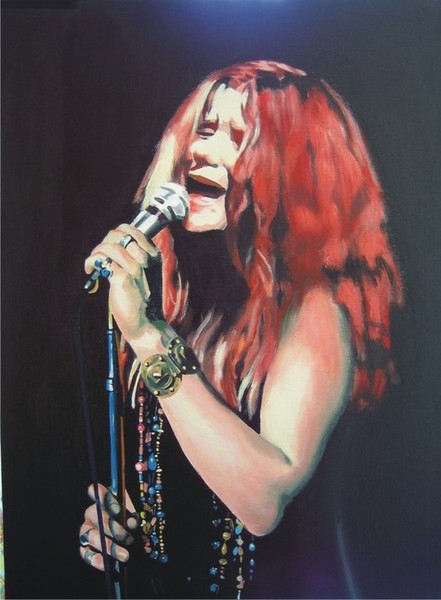 Painting portraits has enabled me to combine two of my other main interests in life, which are rock music and movies. I have painted a number of older generation music icons past & present. Subjects such as Frank Sinatra, Janis Joplin, Jimi Hendrix, Bob Dylan, Elton John, Status Quo, etc. One band in particular has always given me pleasure to put my brushes to, and this is the Rolling Stones. Not just because I have had the privilege of meeting Ronnie Wood on a couple of occasions, but because the legendary band members all have such defined individual features. As a lover of guitar rifts, Hendrix will always be the quint essential rock god for myself and millions of others.