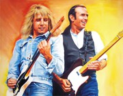 As for the film world, the ultimate road movie of all time has to be the 1969 classic ‘Easy Rider’ which starred Peter Fonda and Dennis Hopper. I painted the said duo astride their gleaming Harley Davidsons in vibrant colours to capture the mood of the film which featured time-honoured rock music tracks. Plus a colourful panoramic background similar to the Arizona & New Mexico locations used in the film as they travelled via the old Route 66 in their laid-back mode.