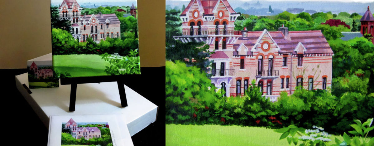 Painted onto a box canvas most commission requests are for a small 8" x 8", or 9"x12" canvas. They make an ideal gift which I supply in a white box, which has the dual purpose as a presentation box, or protective box if mailed within the UK, or overseas. Each painting comes with a matching gift & greeting card of the original painting.